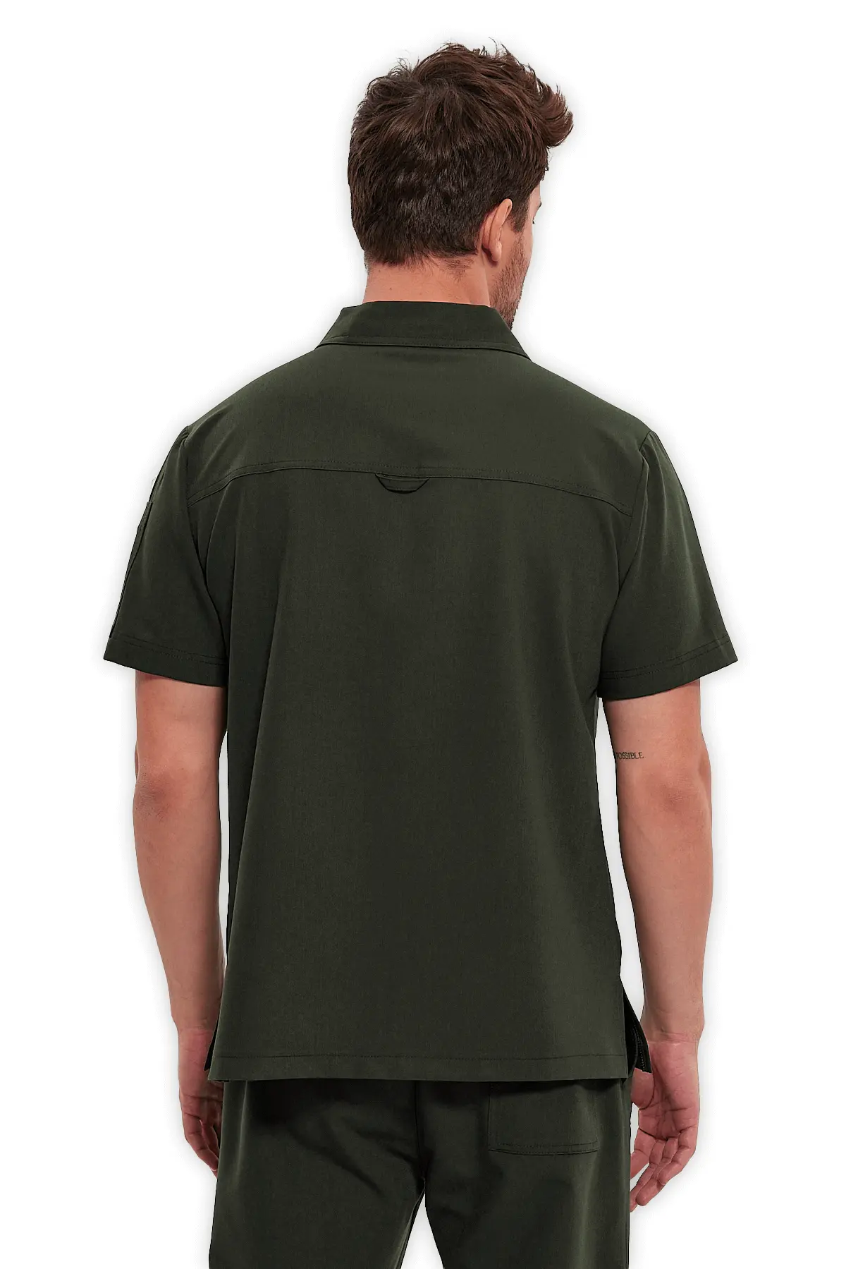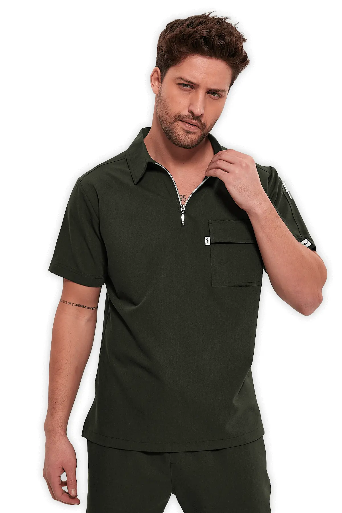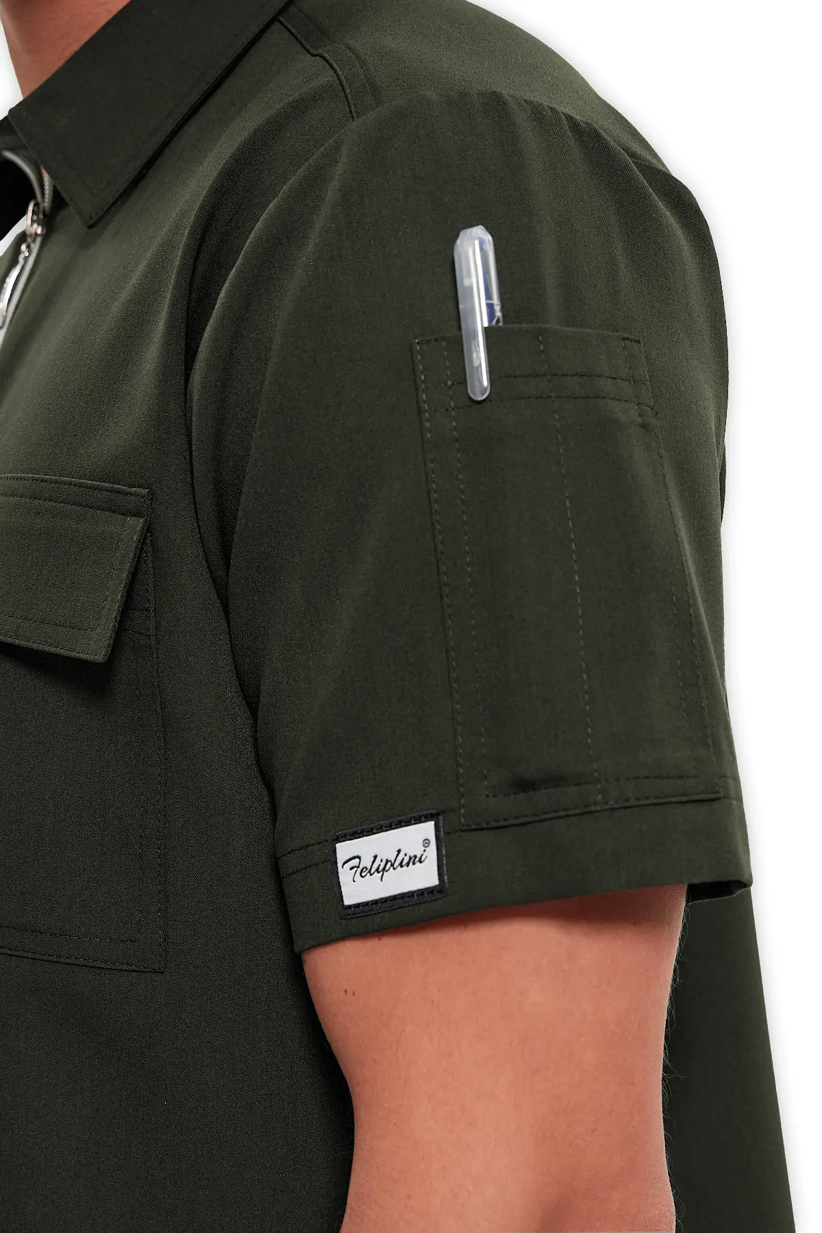 Feliplini Erkek Polo Yaka Fermuarlı Scrubs Üst – Haki
